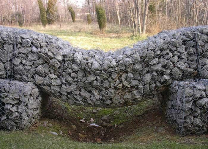 مخزن دوگانه با ابعاد متغیر به طور مساوی به واحدهای داخلی تقسیم می شود.با سایر واحدهای مشابه متصل شده و با سنگ های اندازه پروژه پر شده است تا یک ساختار کلی انعطاف پذیر و نفوذ پذیر مانند دیوارهای نگهدارنده را تشکیل دهد، دیوارهای دریایی، پوشش کانال ها، پوشش های بانک و سد ها برای پروژه های کنترل فرسایش.